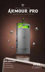 SAMURAI Armour Pro 將軍 PRO 發光主機是一款集外觀設計、強力性能與實用功能於一身的高階可注油電子煙設備。支援多段瓦數調節與 LED 燈效顯示,滿足進階玩家的吸煙體驗需求。搭配新款 0.6Ω/0.8Ω 網狀加熱彈,口感更細膩,煙霧更飽滿。